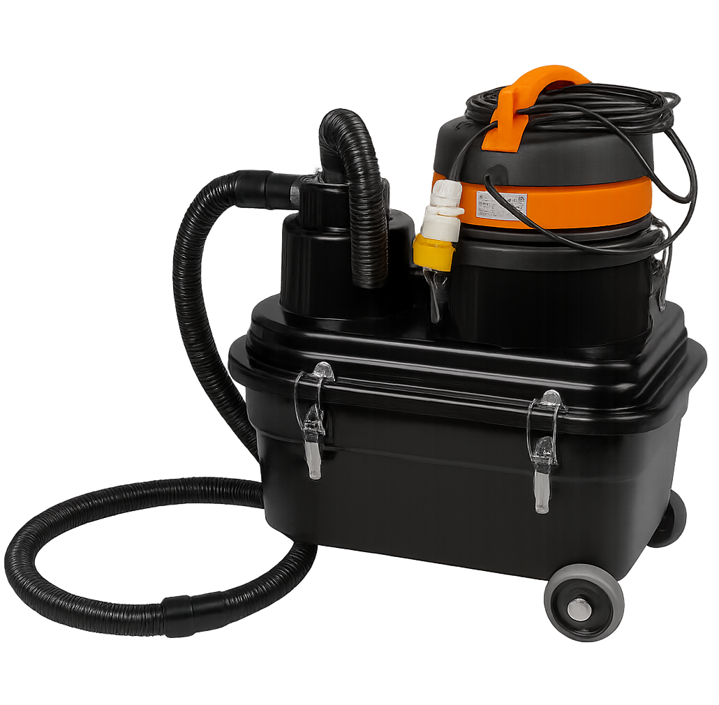 Developed and manufactured in Ireland by Laserchaser in Dublin- a unique M Class vacuum unit built to work on ALL site applications and built to handle high volumes of microfine dust- all day, every day. The STINGER is tough, reliable, simple to operate and easy to maintain in-house- no vibrator units or complicated electronics!