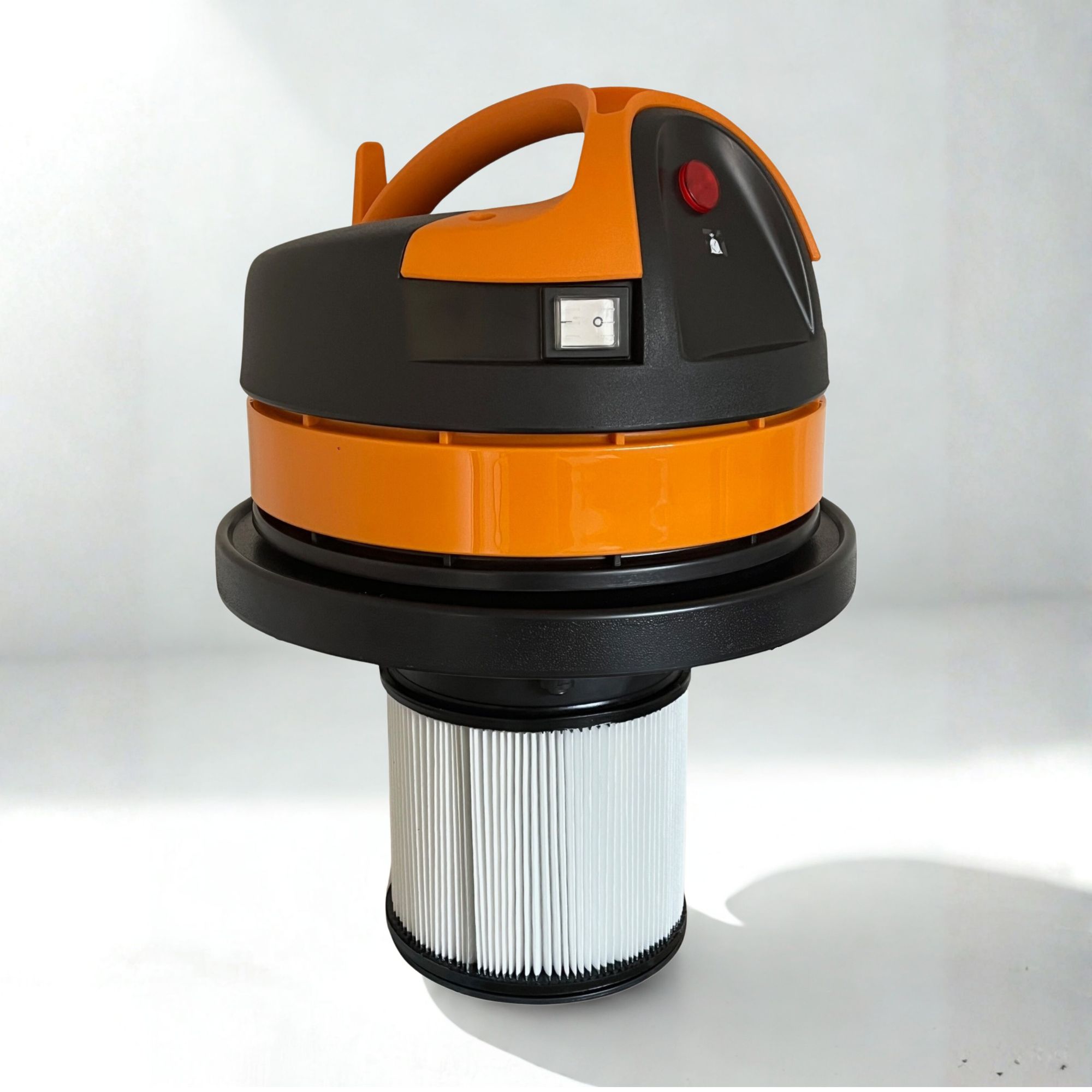 Built-in cyclone separator captures 98% of dust before it reaches the chambers.