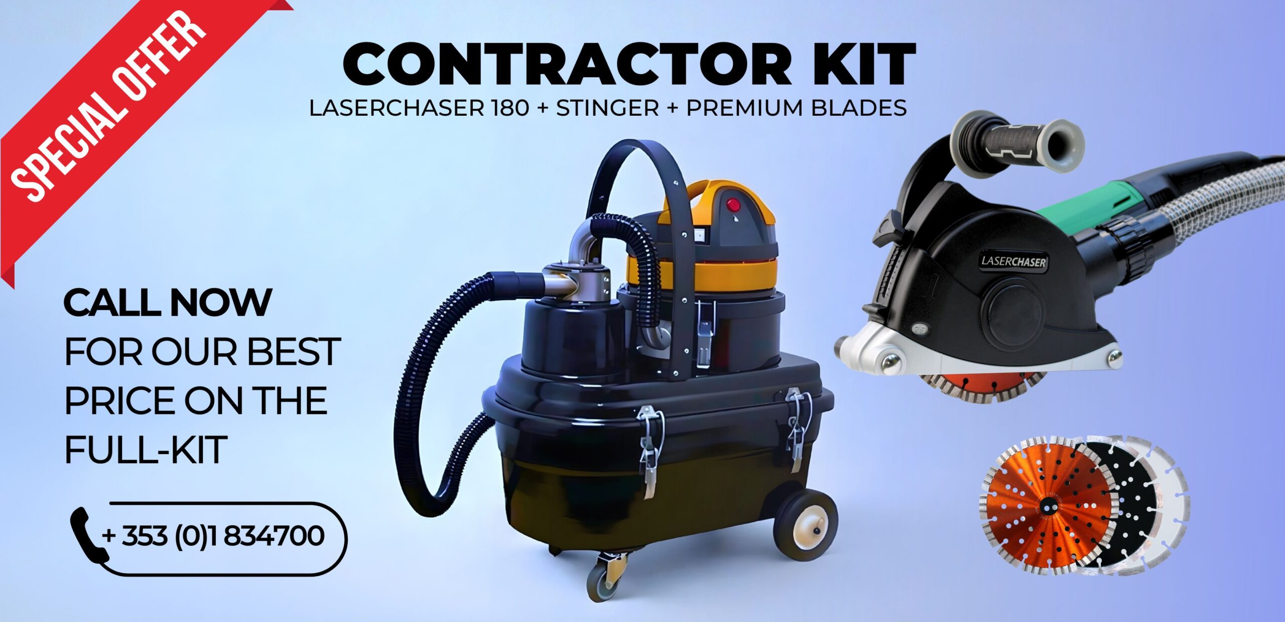 Laserchaser 180 + 2 D180 Premium Black Blades will cut approximately 1500 meters at 25mm depth in 10N to 20N load-bearing blocks used in apartments or commercial units.